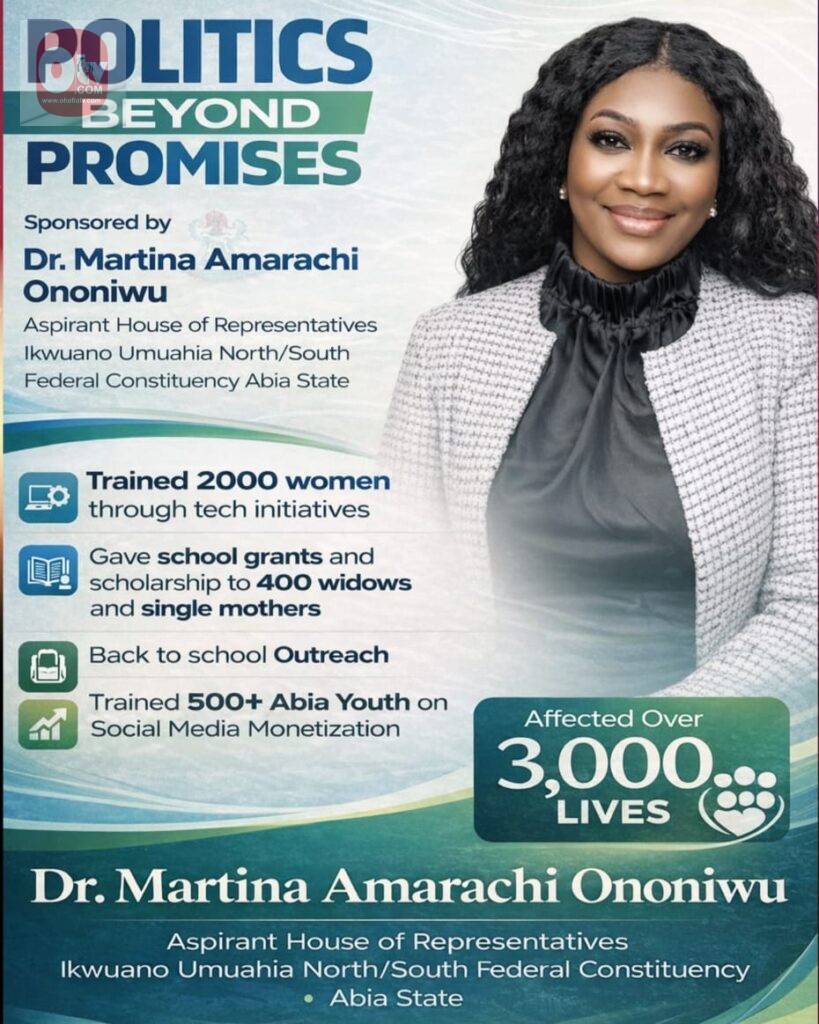 As the race for the House of Representatives seat in Ikwuano/Umuahia North and South Federal Constituency gathers momentum, one voice is cutting through the noise with clarity and conviction—Dr. Martina Amarachi Ononiwu. Her message is direct, unapologetic, and aimed squarely at a long-standing culture in Nigerian politics: the belief that longevity in political circles automatically confers the right to lead.