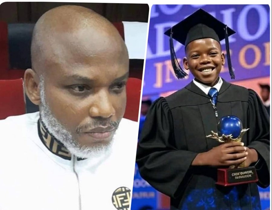 Nnamdi Kanu’s son has made his father proud, graduating as the best student in his law class at a university in the United Kingdom. The young graduate received a standing ovation as he was awarded his law certificate, marking a remarkable achievement in his academic journey.