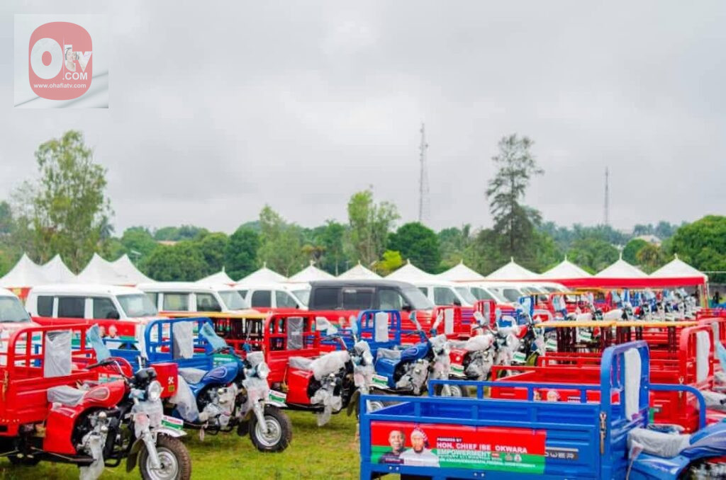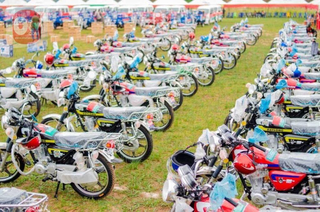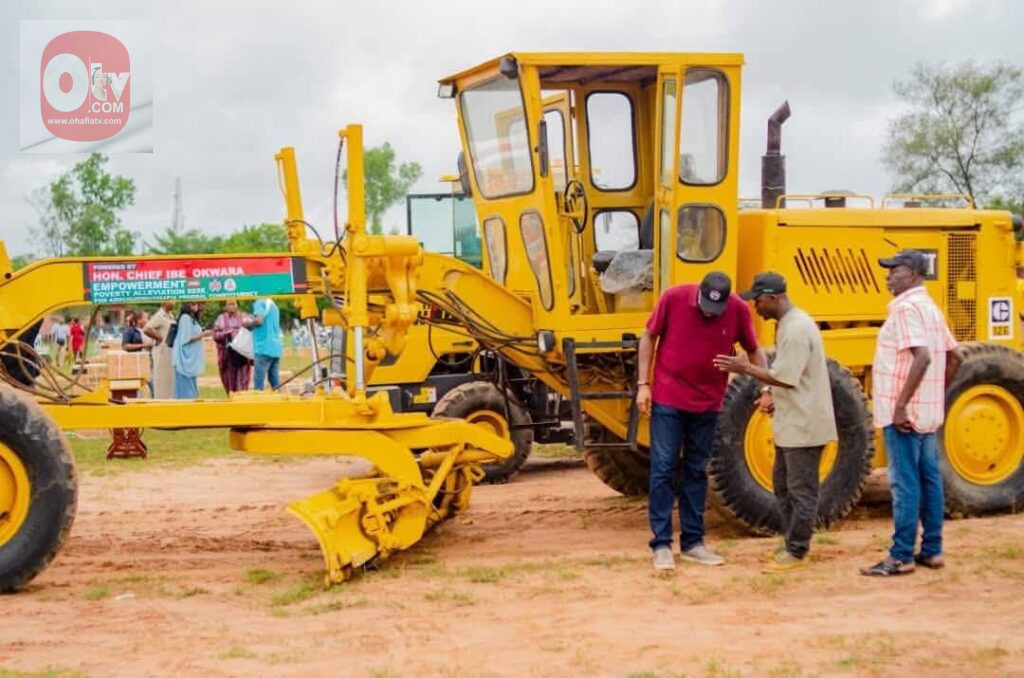 Motorcycles and tricycle trucks to boost mobility and small-scale logistics. Mini buses to expand transport opportunities. Sewing machines, grinding machines, and refrigerators to stimulate micro-enterprises. Generators and air pressure machines to support artisans and local businesses. Food items to cushion immediate economic pressures. Even more strategically, heavy-duty equipment like a grader and payload loader were deployed to improve rural access and unlock agricultural productivity.