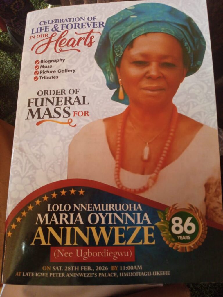 Late Lolo Nnemuruoha Maria Oyinnia Aninweze is remembered as a loving mother, community figure, and matriarch whose life left a lasting impact on those who knew her.
